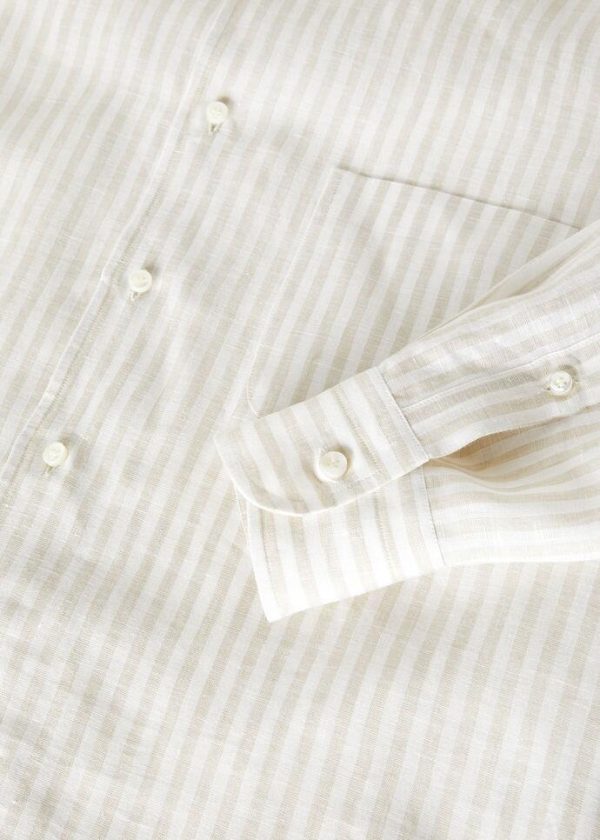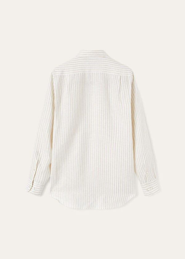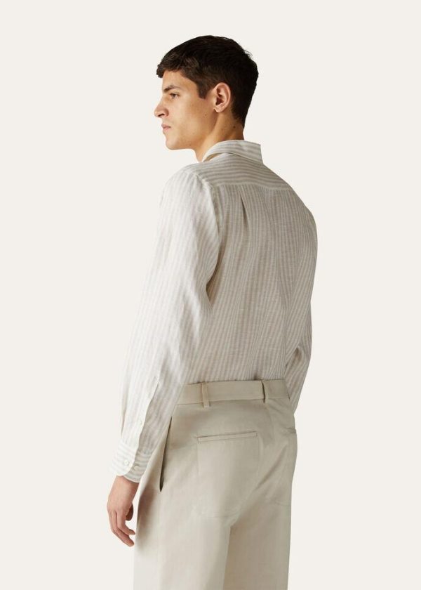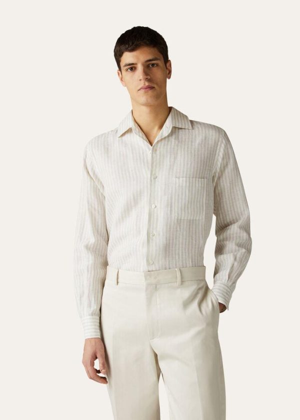 Iconic Loro Piana shirt in striped linen. The collar with facings ensures a crisp, impeccable finished look, also when worn open without a tie. The definitive Loro Piana shirt for leisure time dressing.