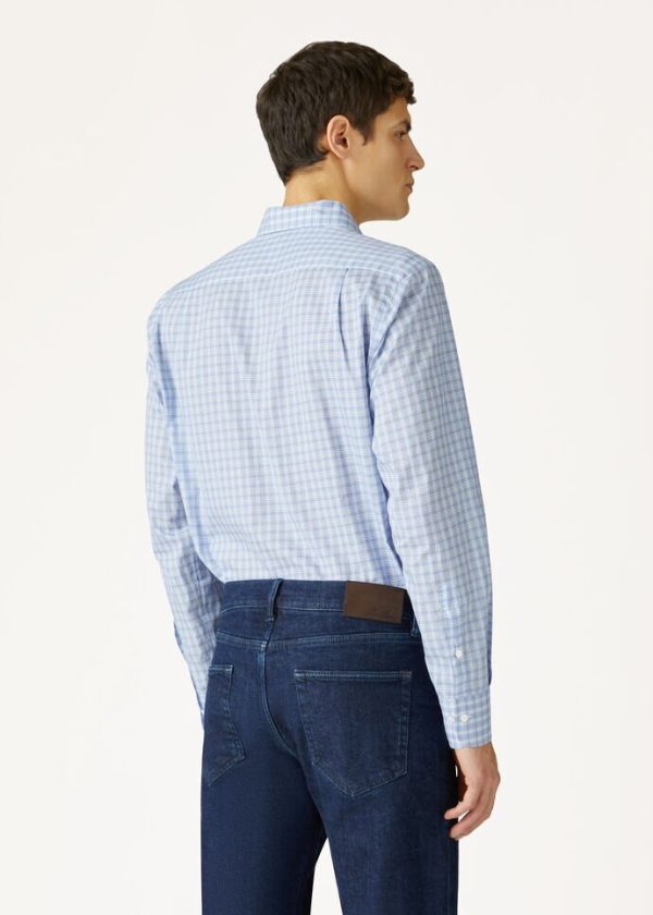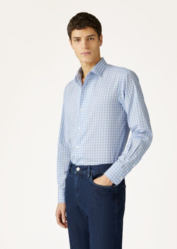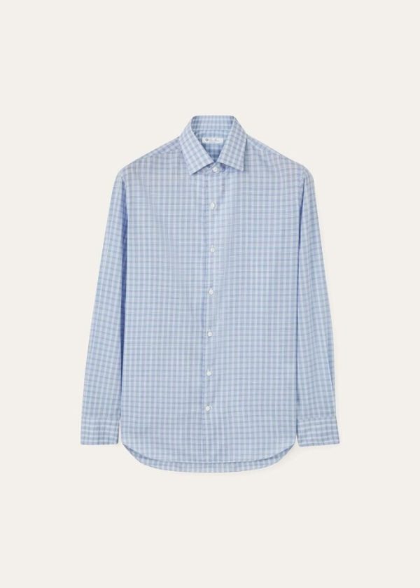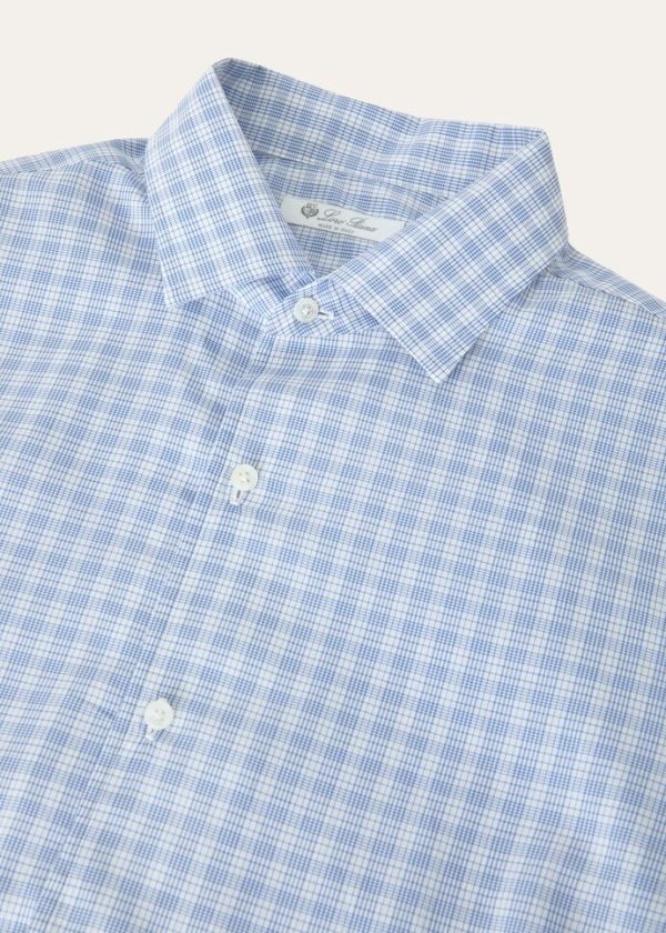 Plaid cotton voile shirt with one-piece collar. Flawless with or without a tie, button it or wear it open. The ultimate expression of Loro Piana’s signature style, this tailored take on a leisure shirt looks perfect on its own or under a blazer.