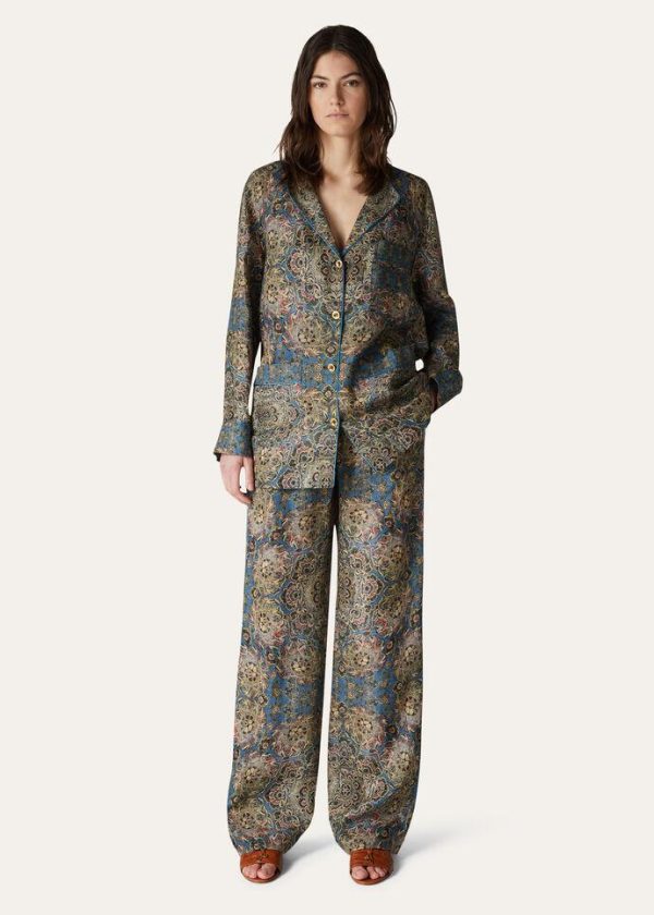 Enjoy the holidays in warm, exotic locations in lightweight, pastel linen. The Jameela shirt features a floral pattern from Loro Piana’s historic archives. Featuring a lapel collar and patch pockets, it creates an original, pajama-style complete look when worn with the matching Helios pants.