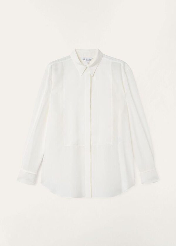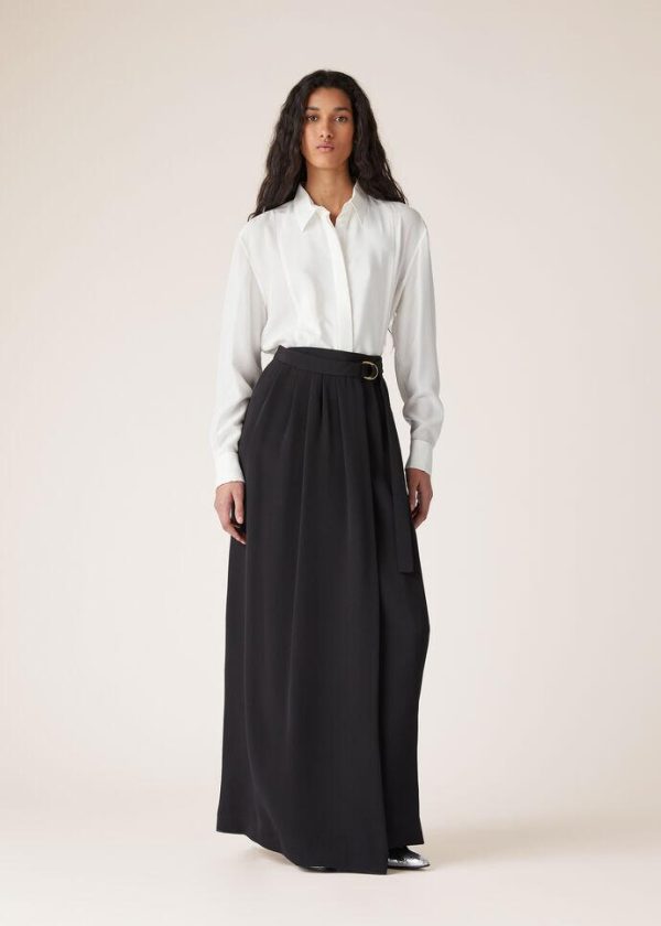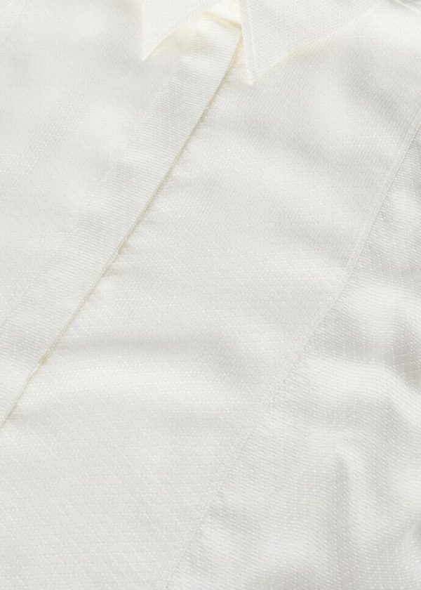 Christmas festivities and events are embodied in the splendor of refined textures and elegant silhouettes. The Jayla silk shirt features a jacquard micro pattern with a soft, compact texture that feels extremely pleasant against the skin. Inspired by men’s evening wear, this flowing style features French cuffs and a large, rectangular front plastron.