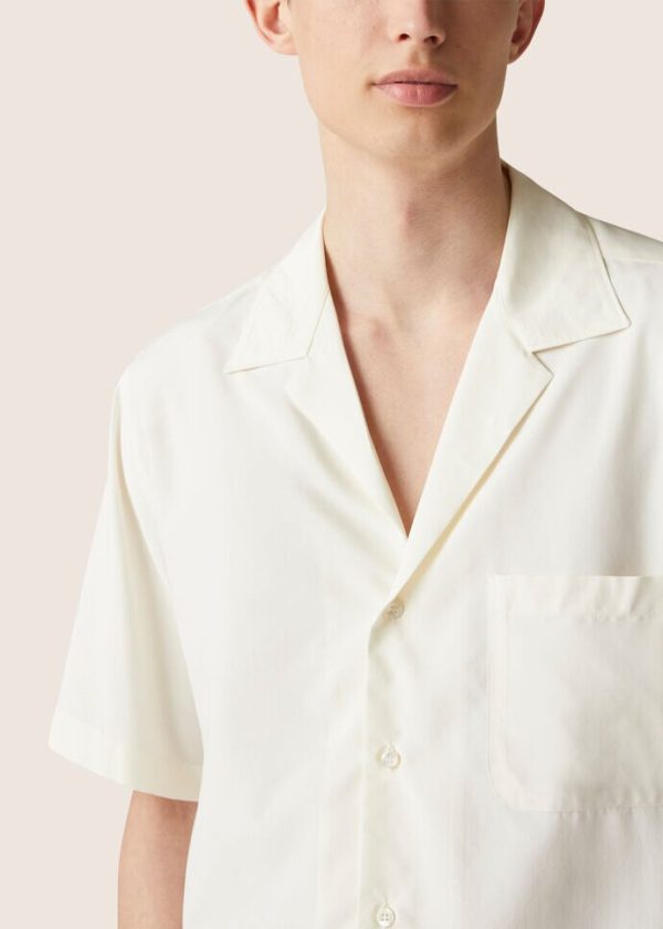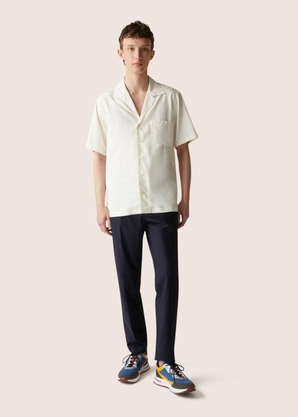 Flowing, short-sleeved shirt made from garment-dyed Japanese silk. This sporty style features a bowling-shirt collar, distinctive details and naturally draped fabric. It can be worn layered and in a variety of outfits.