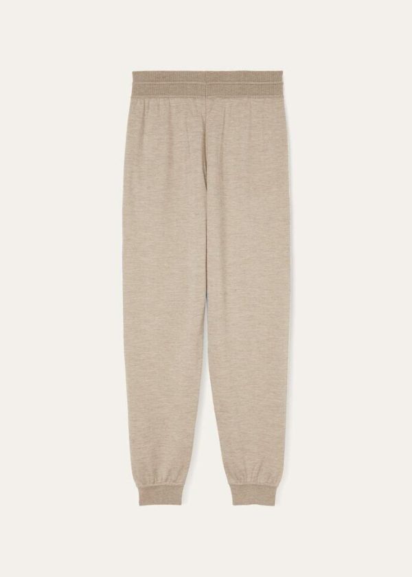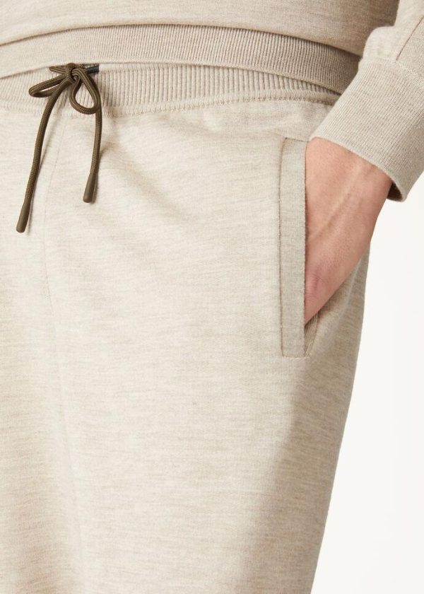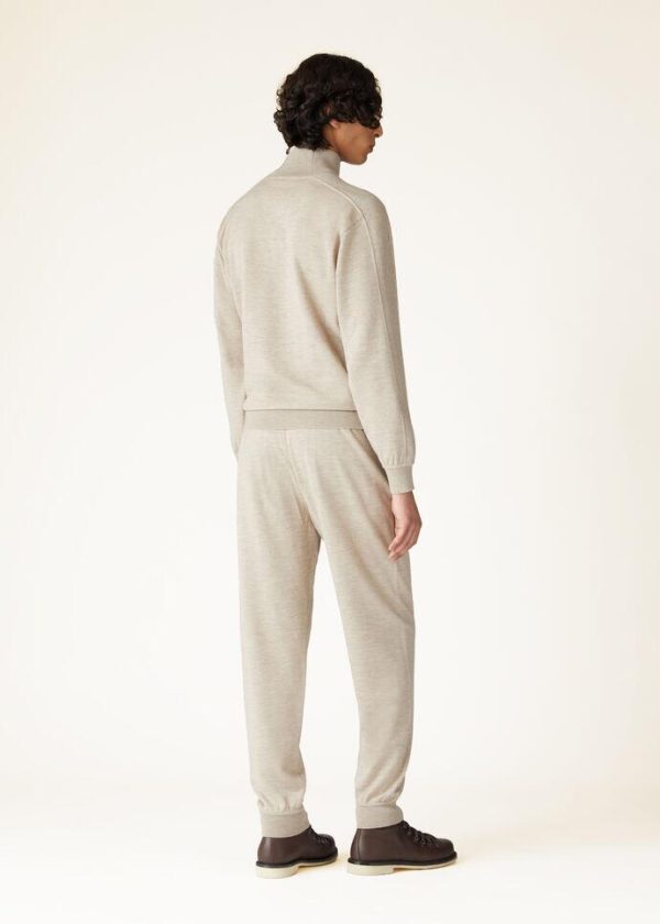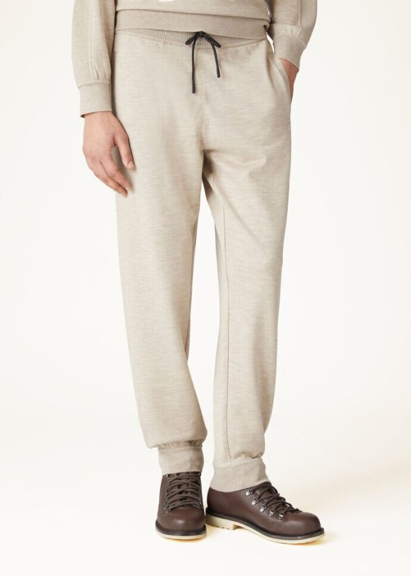 Sportswear garments for Christmas on the ski slopes. These clean-lined joggers feature a comfortable fit. They are made from jersey crafted from naturally colored cashmere yarn, maintaining the characteristic refined softness and light weight of this prestigious fiber. Perfect for lounging and après-ski activities.