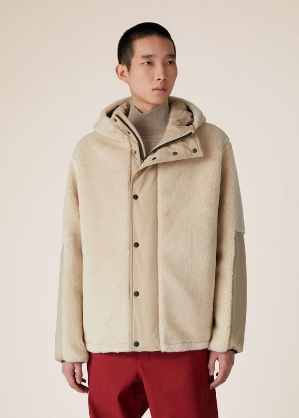 Sportswear garments for Christmas on the ski slopes. This soft, warm hooded bomber jacket is made from Cashfur — an innovative cashmere/silk jersey that uses only the softest, most meticulously selected fibers. Its textured surface is treated to plump up the fibers, making them fluffy, featherlight and woolly. A comfortable regular fit and adjustable drawstring hem complete the look. Thanks to Wind Stretch microfiber lining with a Storm System® finish, it is waterproof and wind-resistant, making it perfect for the mountains and other cold climates.