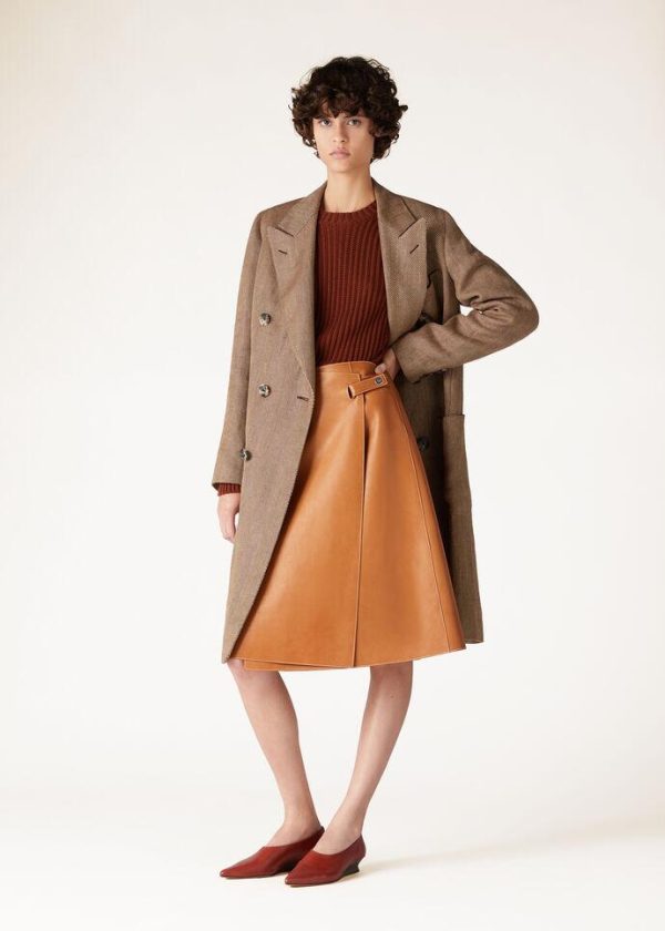 Refined elegance is the hallmark of the Keren skirt, with its slightly flared cut and wrap-around construction. Impeccably crafted from the finest calfskin and suede, this piece embodies a harmonious blend of sophistication and tactile luxury. Elevate your ensemble with its sumptuous feel and timeless style.