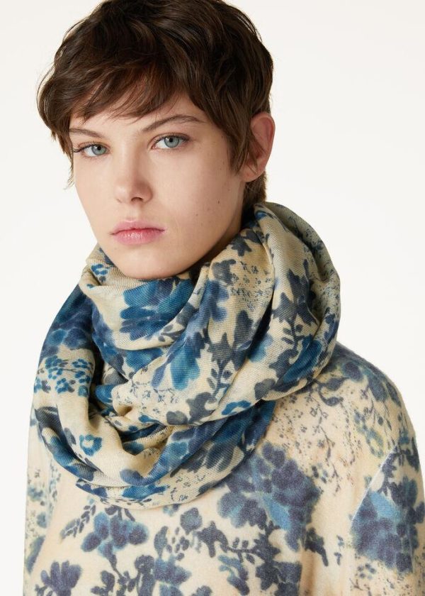 Loro Piana Stoles | Blue Eyes Stole Blue Eyes Flowers/ivory Woman