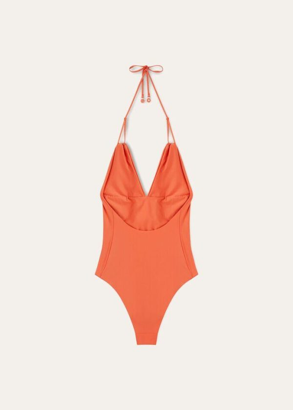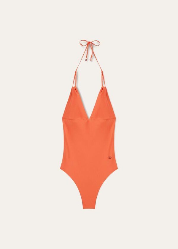 The swimsuits of Loro Piana’s Spring/Summer collection evoke the laidback life of islands surrounded by far-away waters. Crafted from soft jersey, this one-piece swimsuit features bright colors and a compact texture that is both lightweight and durable. The silhouette is accentuated by a comfortable, enveloping fit, while triangle cups and laces that tie at the back frame the décolleté.