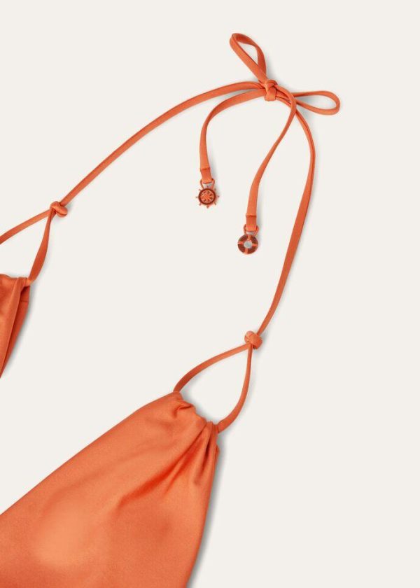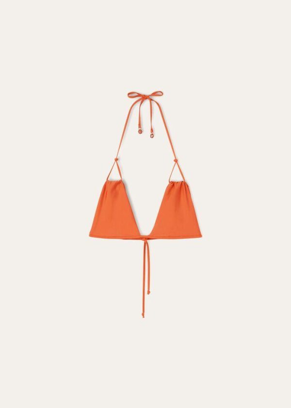 The swimsuits of Loro Piana’s Spring/Summer collection evoke the laidback life of islands surrounded by far-away waters. Crafted from soft jersey, this bikini top is defined by bright colors and a compact texture that is both lightweight and durable. Embellished with nautical-inspired charms, the thin laces tie at the back. When worn with matching bikini bottoms, it creates a minimalist swimsuit.