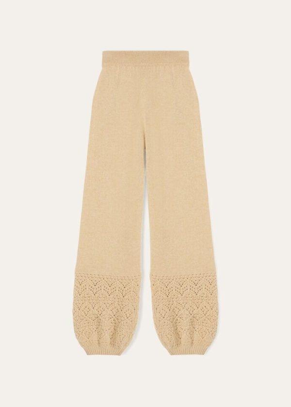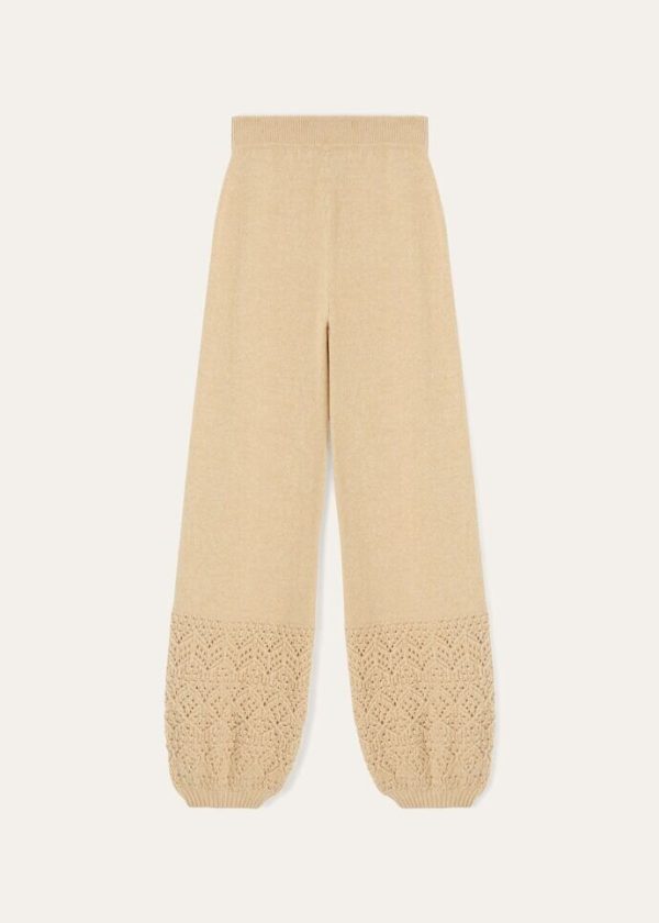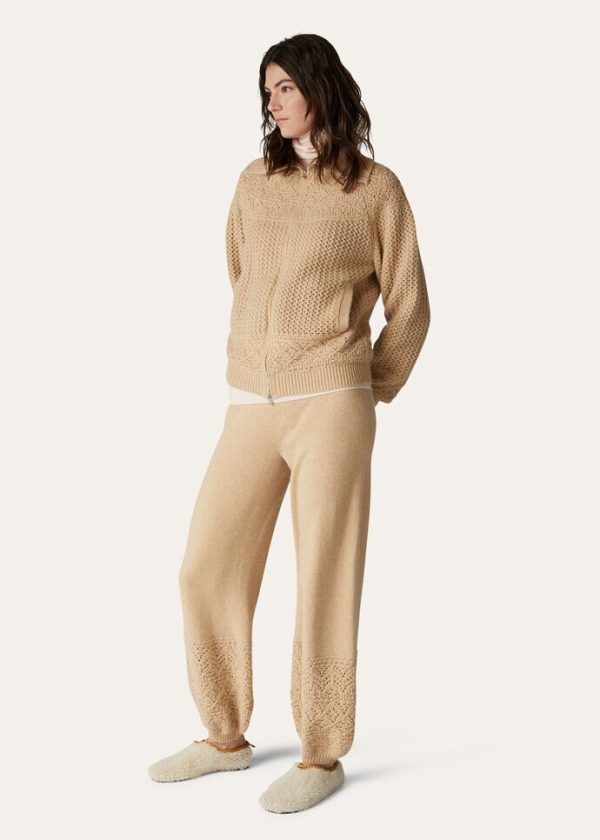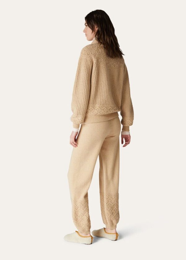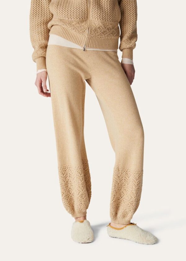 Celebrate the Christmas holidays together, in days spent on the slopes of Italian mountains, wrapped in the warmth of luxury materials. Crafted from Coarsehair® cashmere yarn, the Engadin pocketless pants feature a clean-lined silhouette and lightly puffed cuffs. The jacquard pattern and lacy crochet details provide a sporty allure. A comfortable, minimalist style that is perfect in leisure-time looks.