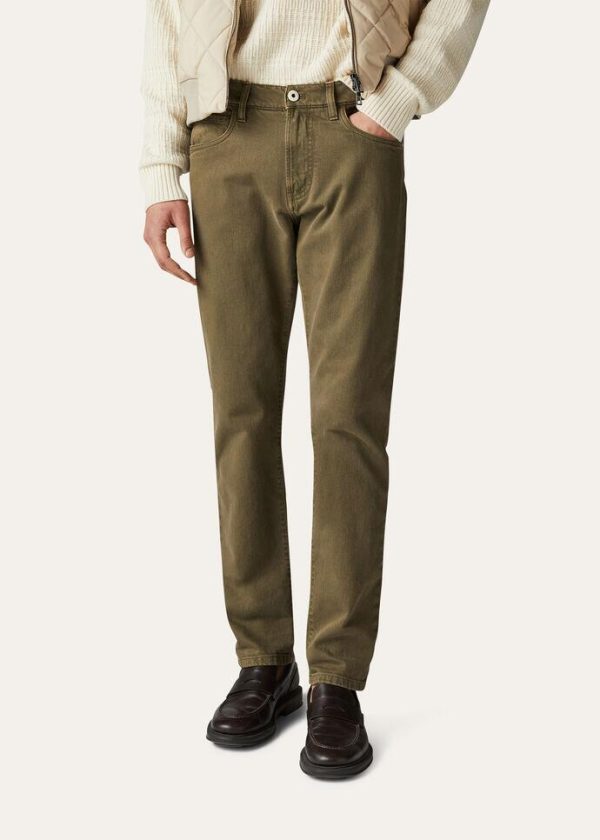Five-pocket trousers made from garment-dyed cotton denim. This regular-fit style is defined by sophisticated details and a modern allure.