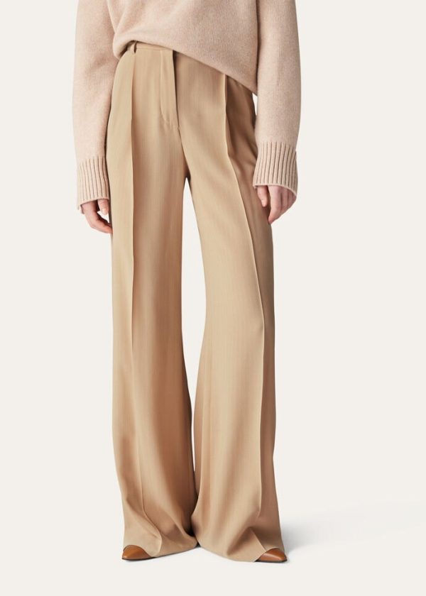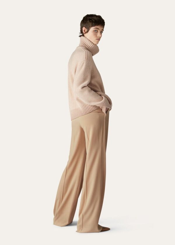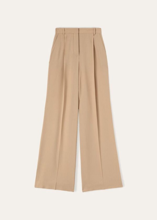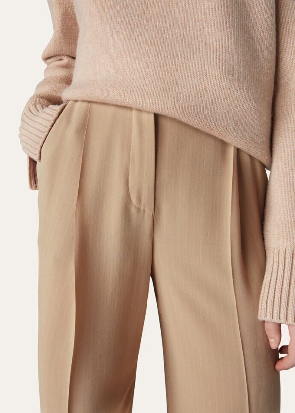 A landscape defined by spectacular contrasts in color makes New Zealand a magical place to visit. This meeting between heaven and earth is captured by Loro Piana in a collection defined by vivid colors and luxurious textures. The Jail pants feature a flowing silhouette and draped wide leg. Crafted from naturally opaque, double silk Georgette, they are enhanced with light jacquard pinstripes for a menswear-inspired, elegant allure. When worn with a matching blazer, they create an impeccable, refined suit.