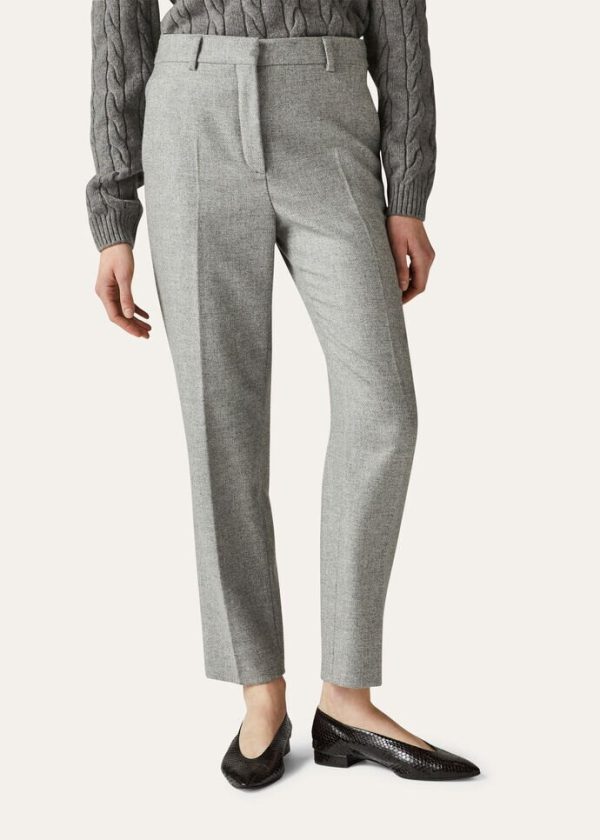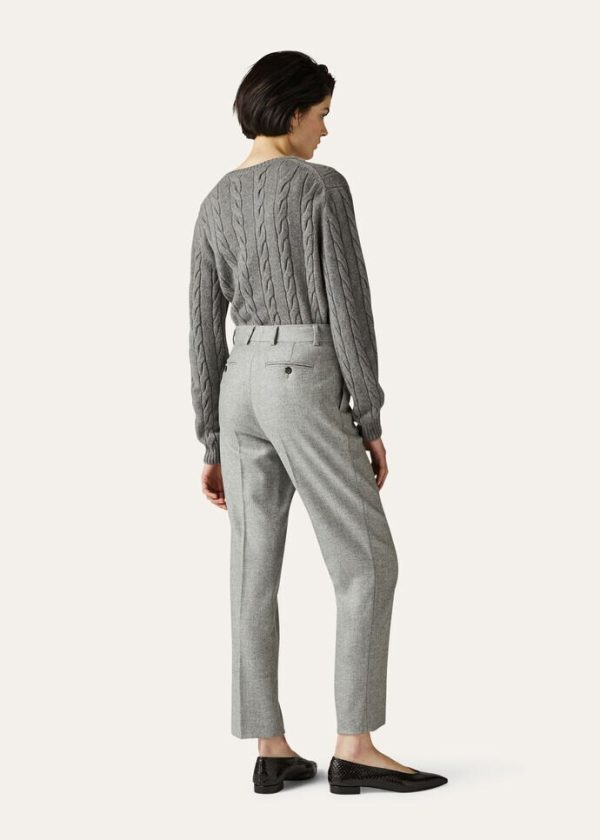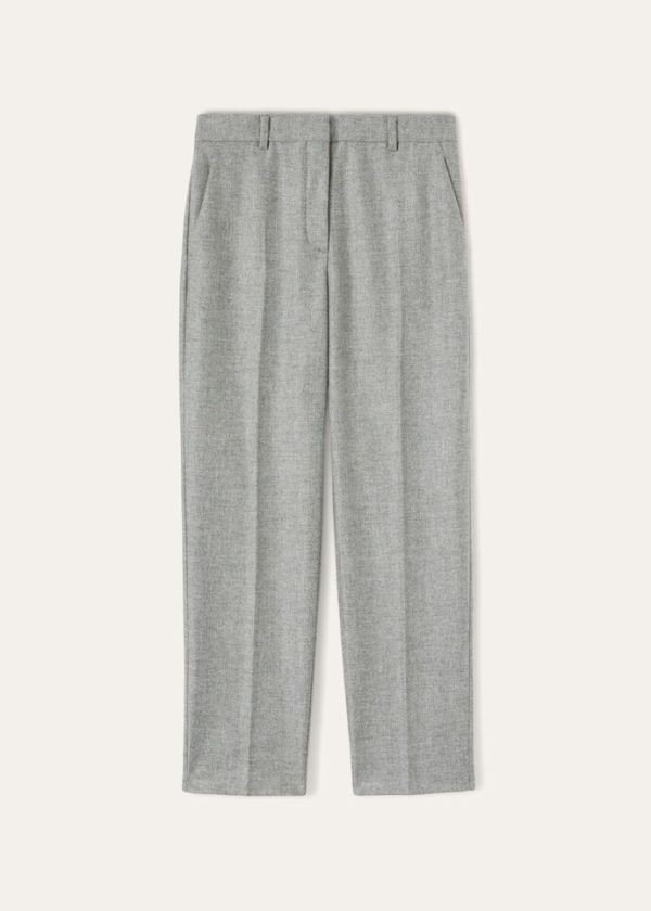 This updated, lightweight flannel version of the iconic Derk style is crafted from naturally colored, soft, luxury cashmere fibers, evoking the pristine landscapes of New Zealand. They are defined by a high waist, flowing silhouette and slightly flared cut. Their compact texture provides a new interpretation of everyday comfort.