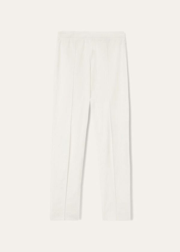 Trousers made from stretch cotton twill with a special finish that bestows a unique sheen to the fabric. This extremely feminine, versatile, new style features a fitted waist and skinny legs that slim the silhouette.