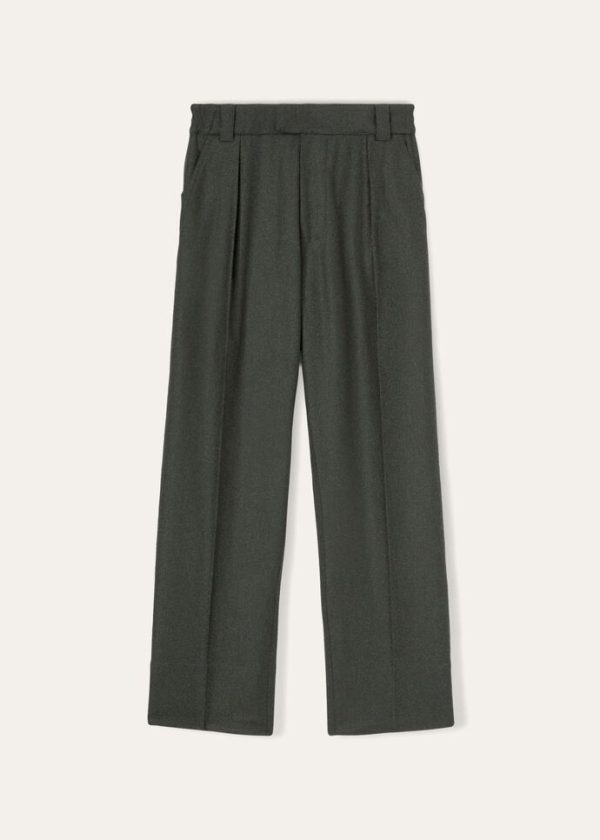 New high-waisted pants made from fluffy cashmere and Wish® wool flannel that is pleasant to the touch. This loose-fitting, highly comfortable style features an elastic insert at the waist and sophisticated tailored details.