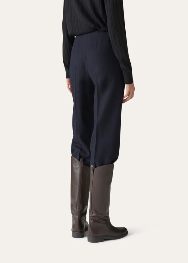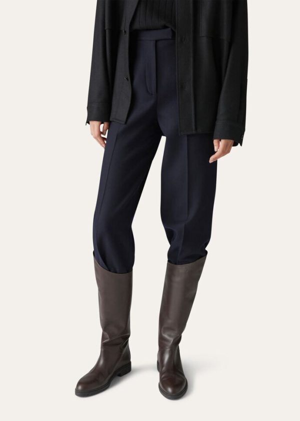 Classic high-wasted trousers made from double-faced The Gift of Kings® — Loro Piana’s exclusive selection of the world’s finest wool. They are water-repellent, thanks to a Rain System® treatment. Defined by a modern, feminine silhouette, they slightly flare at the cuffs.