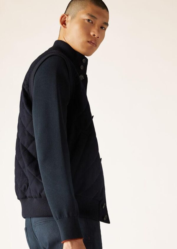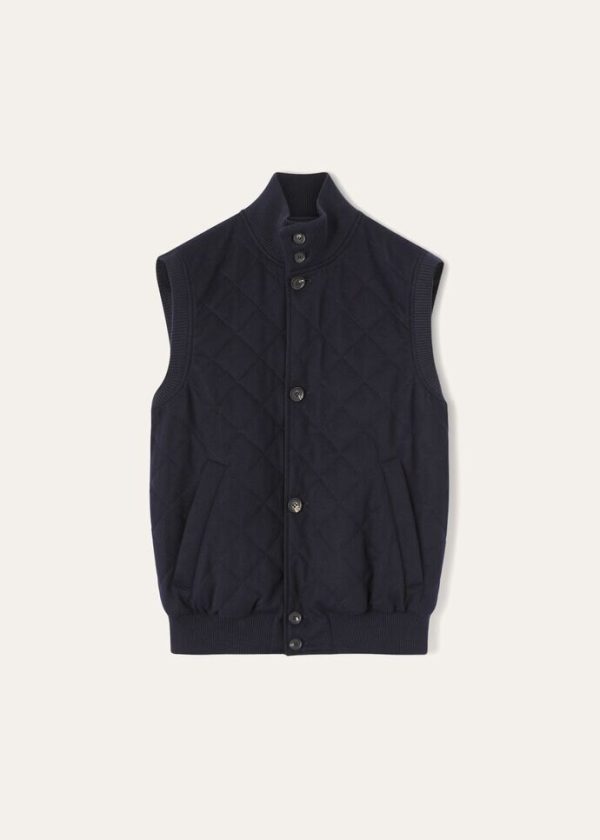 Reversible gilet. One side is in extremely fluffy cashmere fabric that feels like velvet, while the other is in Wind Stretch microfibre with a waterproof, wind-resistant Storm System® treatment. Classic, diamond-shaped quilting accentuates its decidedly bold, sporty allure.
