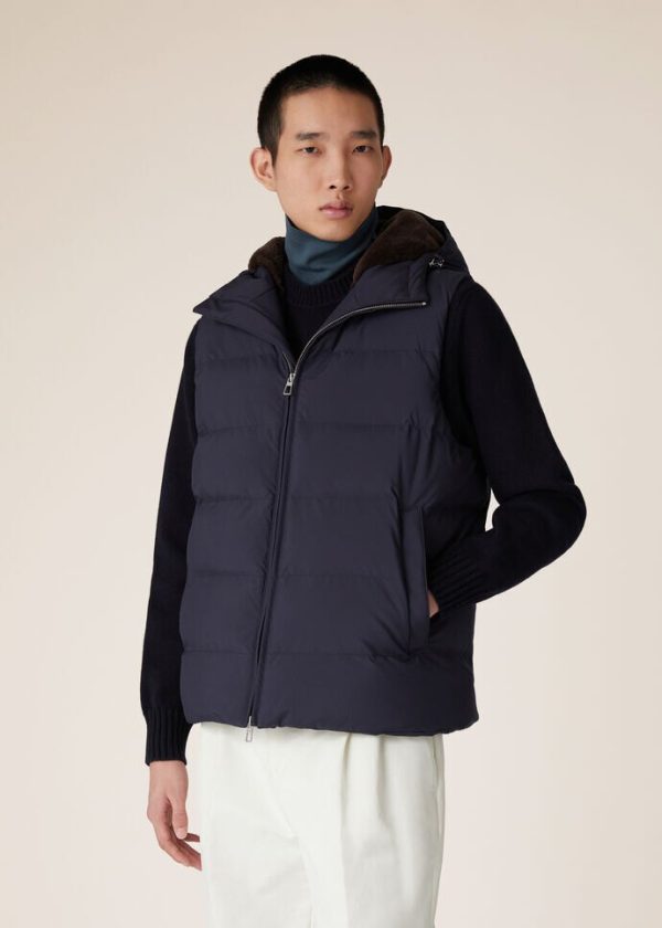 Celebrate the Christmas holidays together, in days spent on the slopes of Italian mountains, wrapped in the warmth of luxury materials. Crafted from naturally waterproof, wind-resistant Wind Storm System® microfiber, the hooded Zermatt vest features warm fur lining. The result is a one-of-a-kind contrast in feel and materials, while a drawstring hem and cozy, loose fit provide a sporty allure.