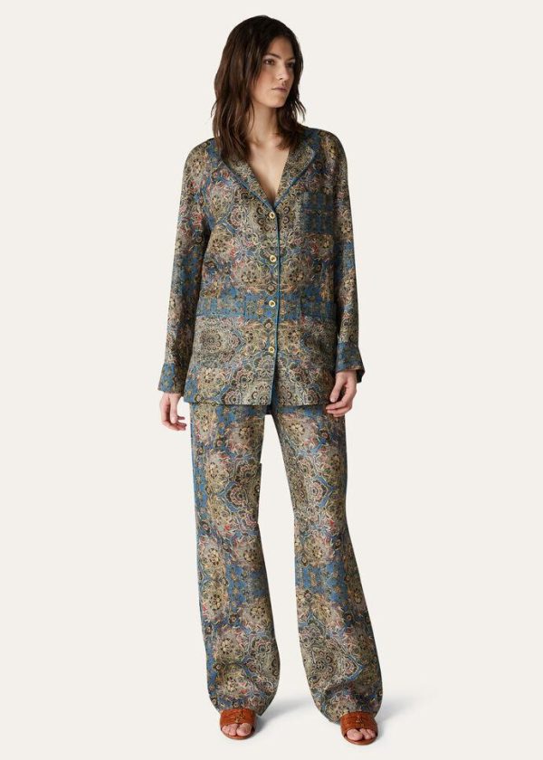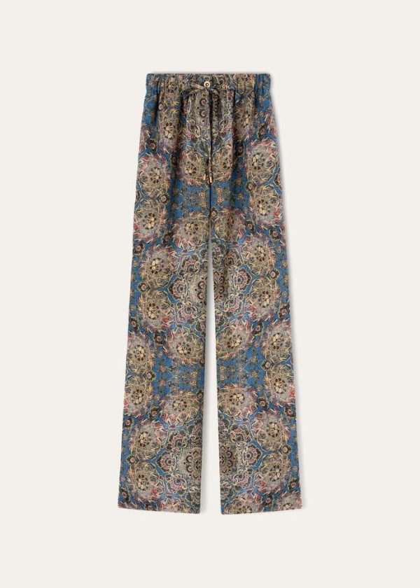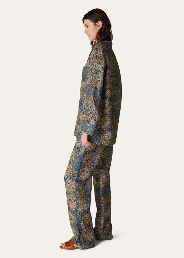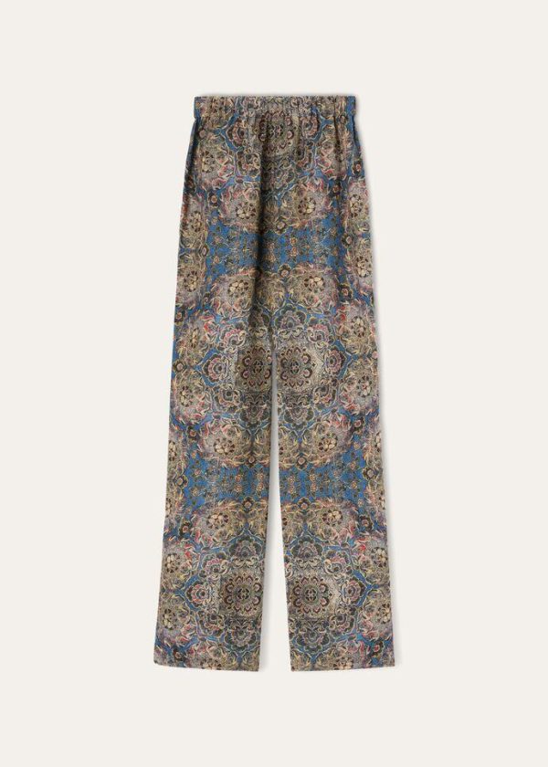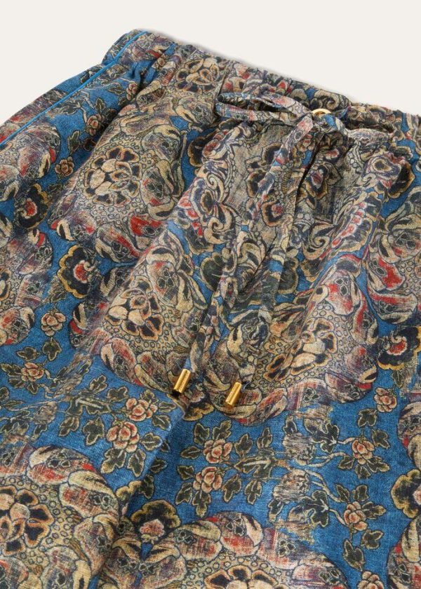 Enjoy the holidays in warm, exotic locations in lightweight, pastel linen. The Helios pants feature a loose-fitting, pajama-style silhouette and elastic drawstring waist. Their original, elegant floral pattern is taken from Loro Piana’s historic archives, making them perfect in casual-chic looks.